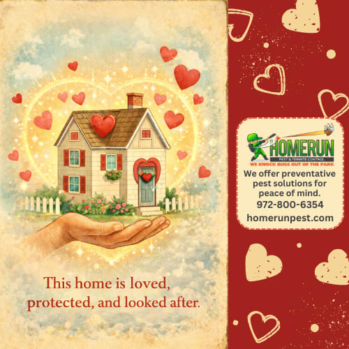 Loving your home goes beyond curb appeal and décor—it’s about protecting what matters most. February is a perfect reminder that small, preventative steps can help keep your home comfortable, protected, and pest-free long after Valentine’s Day has passed. February is all about appreciation—and while we often focus on people we love, it’s also a great time to show a little love to your home. One of the smartest ways McKinney homeowners can do that is through pest prevention. Many pest problems don’t begin with an emergency. They start quietly, often outside the home or in rarely visited areas like attics, crawl spaces, and garages. By the time pests are obvious, they may already be well established. Why Prevention Matters in McKinney, Texas McKinney’s mix of historic neighborhoods, newer developments, greenbelts, creeks, and ongoing construction creates ideal conditions for pests. North Texas weather fluctuations allow rodents, ants, termites, and other pests to remain active longer than many homeowners expect—even during cooler months. Preventative pest control focuses on reducing the conditions that attract pests in the first place, rather than reacting after damage has already occurred. Small Problems Grow When Left Untreated A few ants, a faint noise in the attic, or minor moisture around the foundation may not feel urgent. But over time, these small issues can lead to: Prevention helps stop pest activity before it reaches that stage. What Pest Prevention Really Includes Preventative services aren’t about over-treating a home—they’re about being proactive and targeted. For many McKinney homes, prevention includes: This approach helps keep pest activity low and manageable year-round. Seasonal Timing Makes a Difference Late winter is an ideal time for prevention. As temperatures fluctuate, pests begin searching for food and shelter—often before spring arrives. Addressing potential issues in February allows homeowners to stay ahead of: Early action often means fewer treatments and fewer surprises later. Prevention Protects More Than Just Your Home Beyond property damage, pests can affect daily comfort and peace of mind. Prevention helps reduce: For many homeowners, knowing their home is protected is just as valuable as the service itself. Show Your Home Some Love This February Loving your home isn’t just about improvements you can see—it’s also about protecting what you can’t. Pest prevention is a practical, cost-effective way to care for your home and avoid problems before they start. Home Run Pest & Termite Control proudly serves McKinney, Texas with preventative pest solutions designed for local conditions. If you’re looking for peace of mind and long-term protection, a preventative inspection is a thoughtful way to show your home a little extra love this season. Home Run Pest & Termite Control Call: 972-800-6354