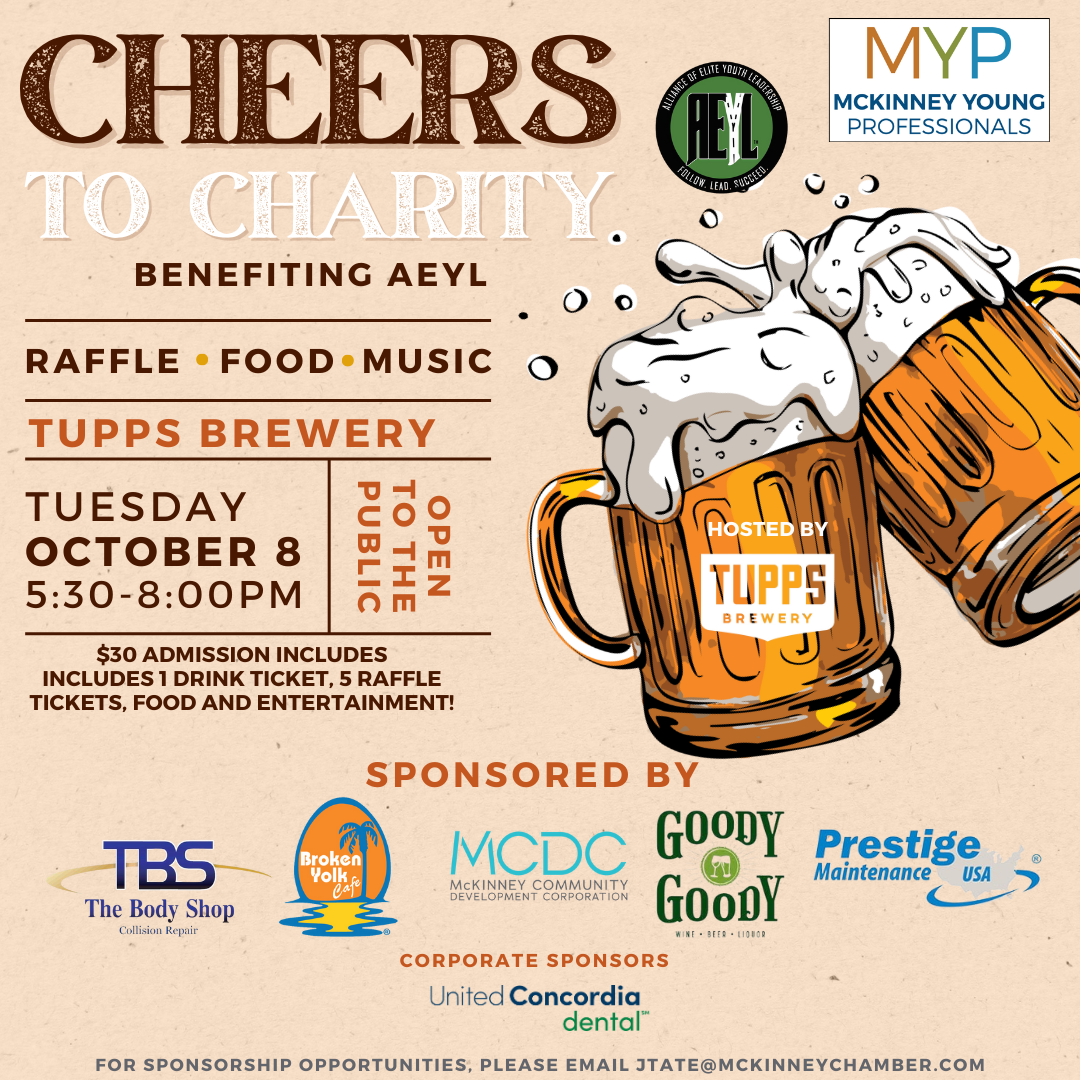 Event Entry Fee $30 : Includes 1 drink ticket, 5 raffle tickets, food and entertainment! Additional Raffle Tickets: 5 for $15 or 10 for $20 For more event information email: jtate@mckinneychamber.com Come and go event.Cheers to Charity