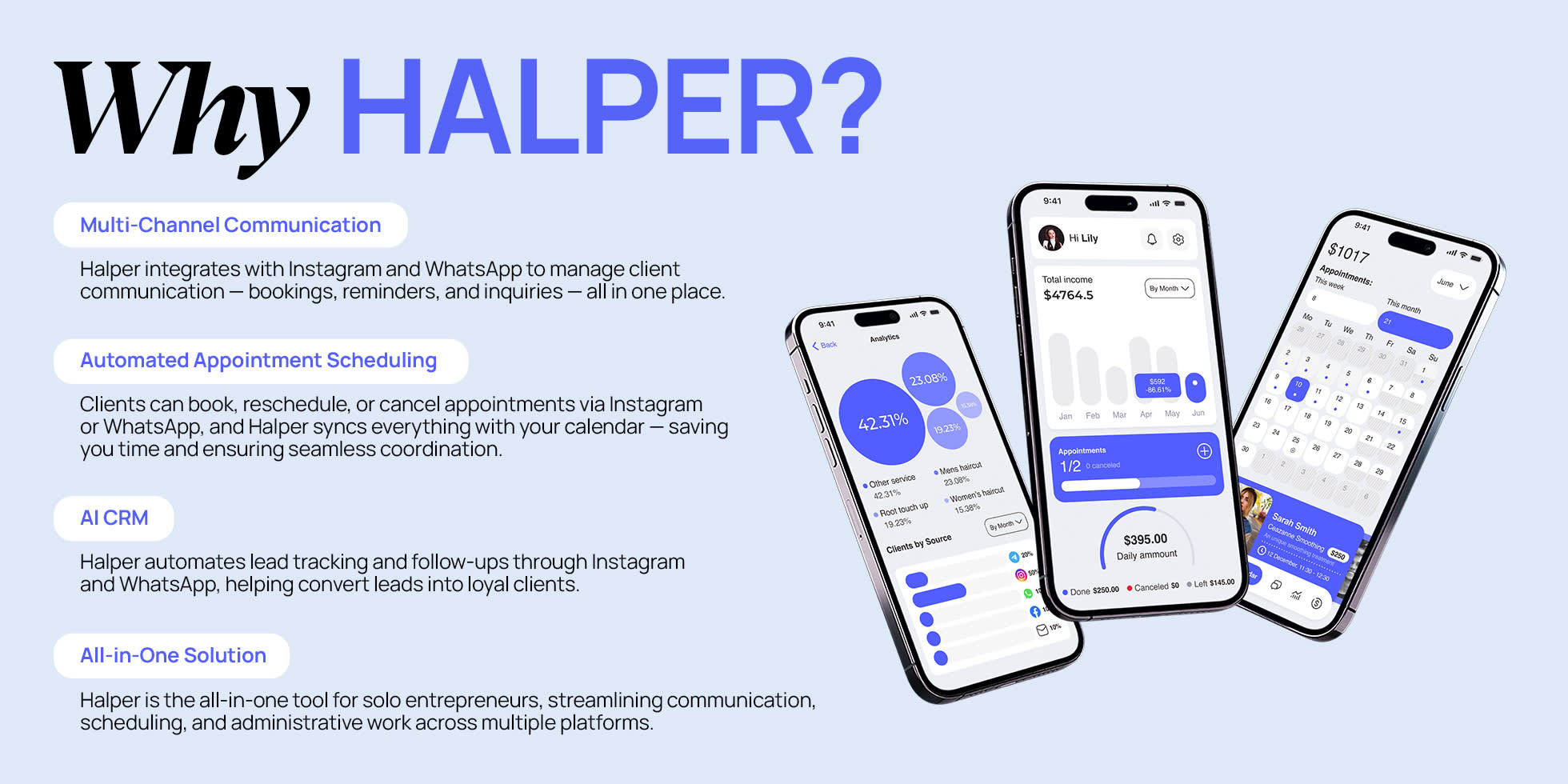 Yesterday, Halper AI could have closed 30% more clients than you did. You lost those opportunities because you were: Mid-session with a client (Wellness/Beauty) Actually trying to have a life outside of your DMs. Halper is the best AI manager for SMEs, Backed and Recognized by Google, Nvidia and AWS, now launches it´s 1 month free offer for all the members of our Chamber of Commerce. Promo Code : HLP2XHALPER - 1 Month Free Offer