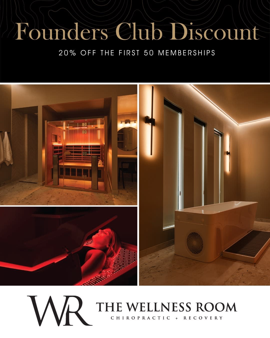 Founders Club: Limited-Time 20% off the first 50 Memberships purchased. Be one of the first to join The Wellness Room and lock in introductory Founders Club pricing on our membership plans! This is your chance to experience McKinney’s newest destination for recovery and wellness with exclusive early access rates on: - Sauna + Cold Plunge - Red Light Therapy - Recovery Room - All-Access Memberships Founders Club pricing is only available to the first 50 members. Secure your discounted memberships today! Expiration Date : 4/10/2026 Promo Code : Founders Club