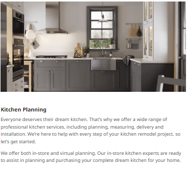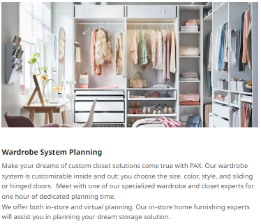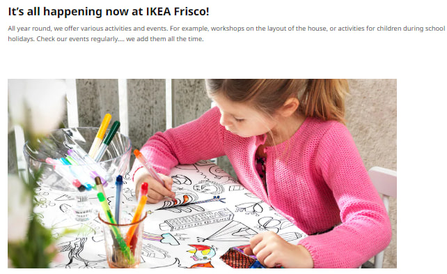 IKEA offers a wide range of well-designed, functional products at low prices. Our shopping experience is complete with a showroom, a marketplace, a Swedish restaurant and bistro. IKEA for business https://www.ikea.com/us/en/appointment/business/ Kitchen planning https://www.ikea.com/us/en/appointment/business/ Swedish Restaurant and Bistro https://www.ikea.com/us/en/stores/restaurant/?itm_campaign=LSP&itm_element=STORE_RESTUARANT-Button-&itm_content=RESTAURANT-MENU In-Store events https://www.ikea.com/us/en/stores/events/ikea-frisco-tx/